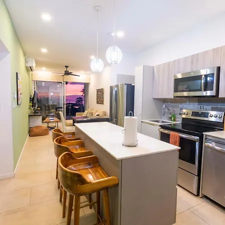 Sunset Ocean View Condo biedt uitzicht op het zwembad en bevindt zich op 15 minuten wandelen van de Jaco Ropes in Jacó. Dit strand appartement ligt in de nabijheid van Del Mar Surf Camp en biedt een terras waar gasten kunnen ontspannen en genieten van het uitzicht op de zee.